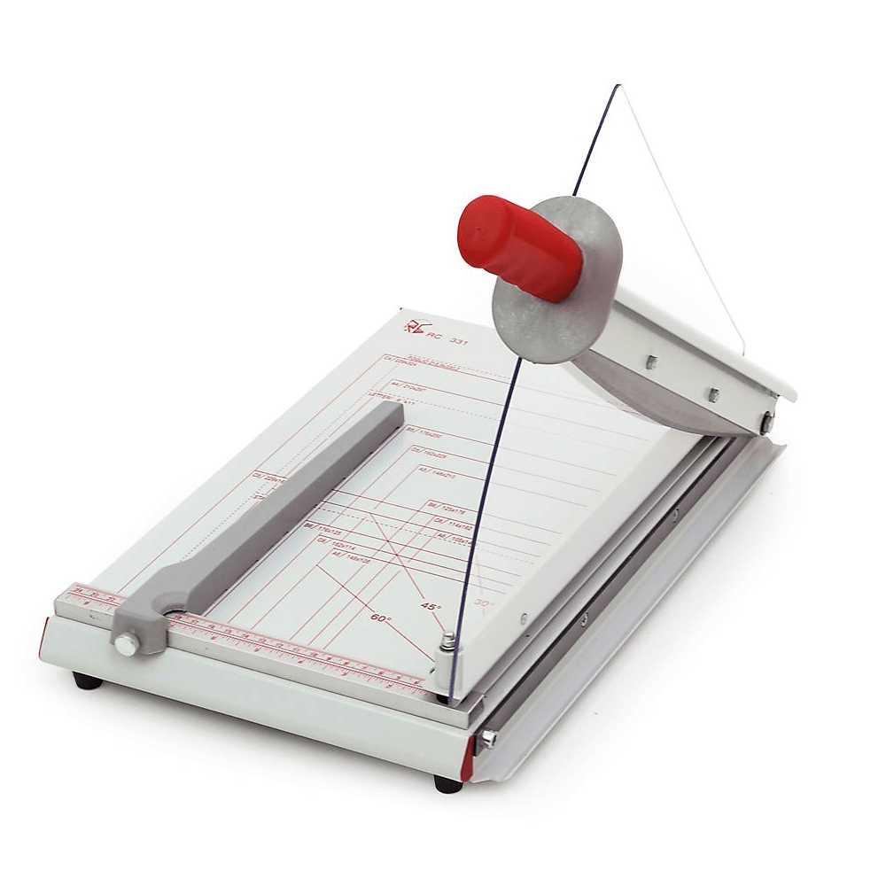 Gilotyna biurowa Argo RC331 N — ręczny system docisku papieru, przezroczysta osłona bezpieczeństwa, ergonomiczny uchwyt, długość cięcia 330 mm, blat roboczy 330×245 mm, jednorazowo do 24 kartek 70 g/m². Idealna do biura i dokumentów.