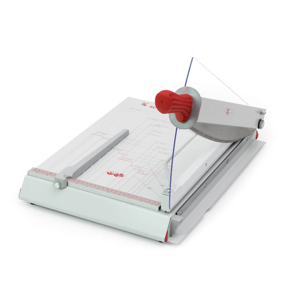 Gilotyna RC380 SE to ręczna gilotyna biurowa stworzona do precyzyjnego docinania papieru — dokumentów, wizytówek, identyfikatorów