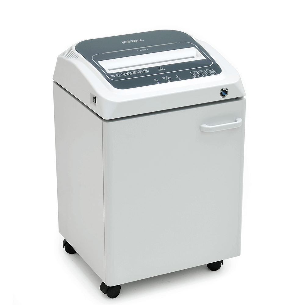 Kobra 245 C2 TS ES – niszczarka P-5 z dotykowym panelem, kosz 60 l, cicha i energooszczędna. Niszczy papier, karty i płyty CD/DVD